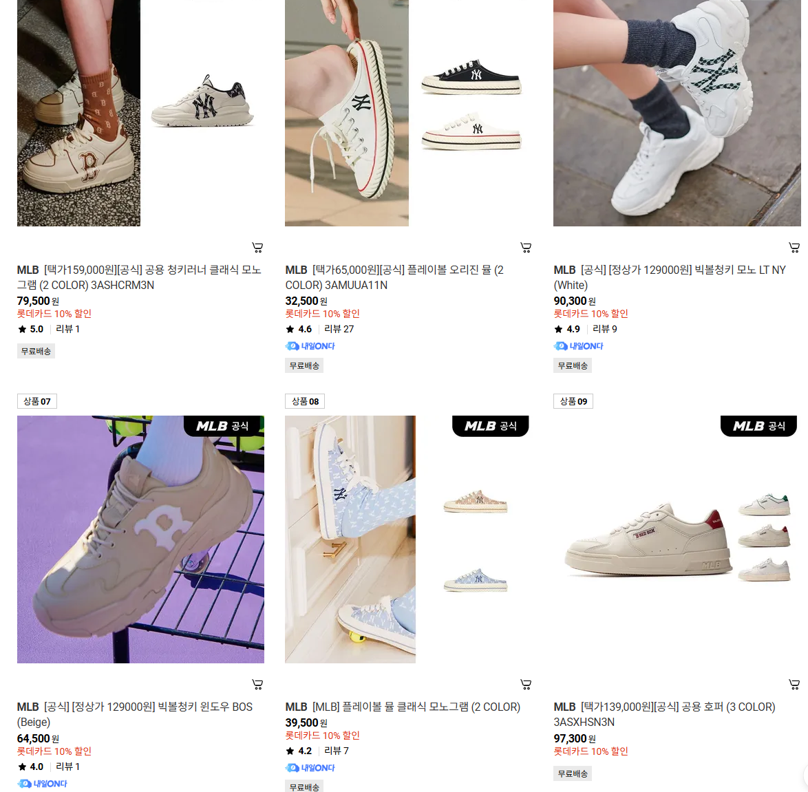 MLB 다양한 제품을 할인 판매하네요.