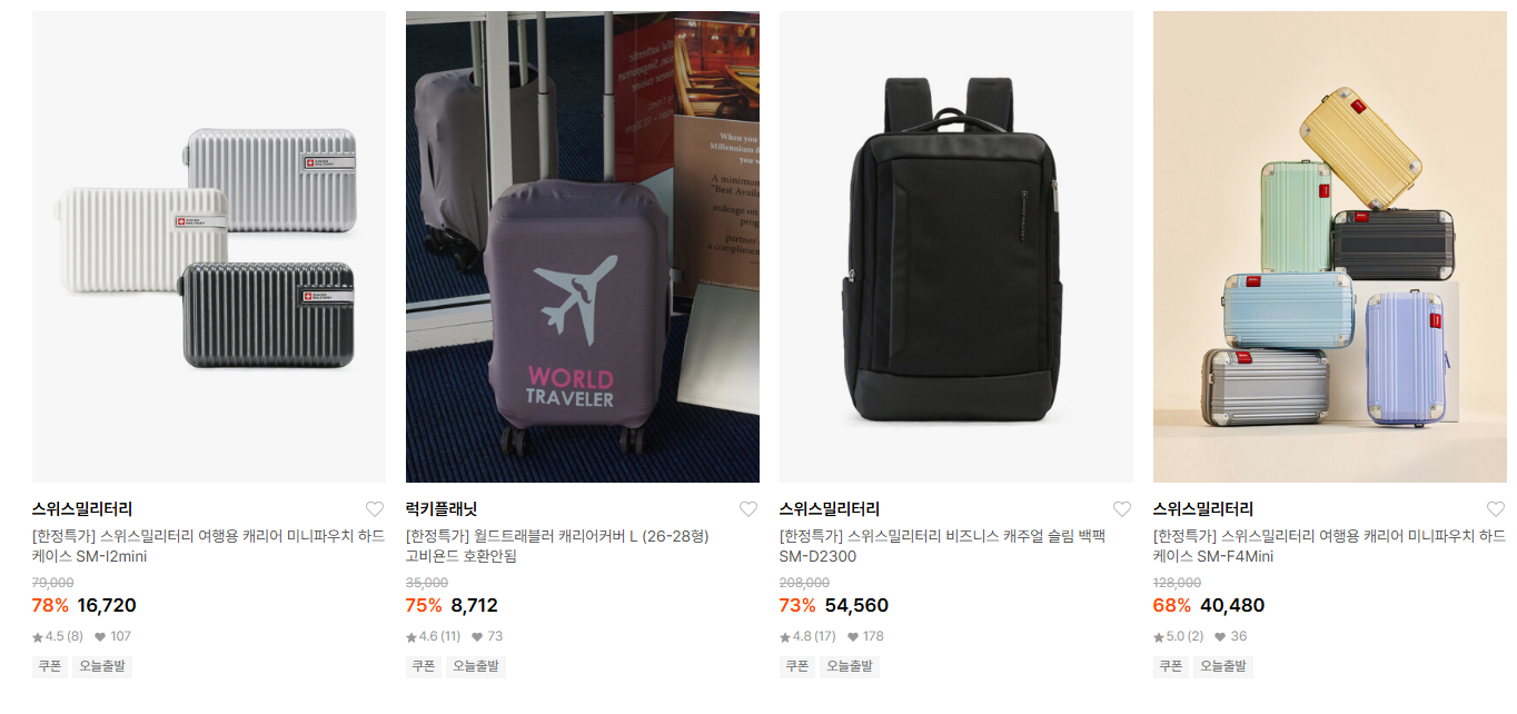 할인 품목 : 캐리어, 백팩, 파우치 등