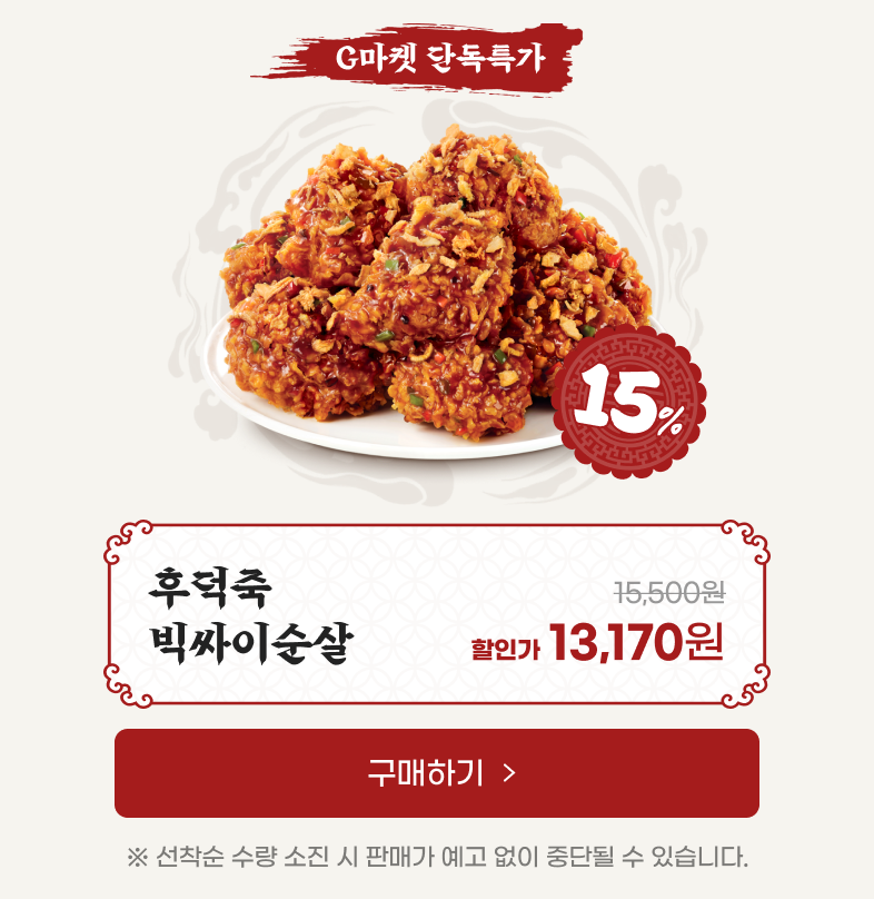 할인 품목 : 후덕죽 싸이버거 세트, 후덕죽 빅싸이순살 등