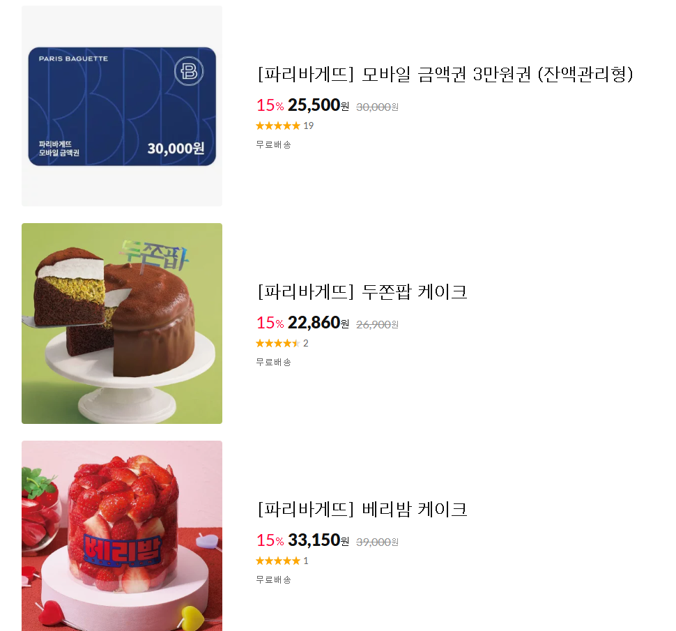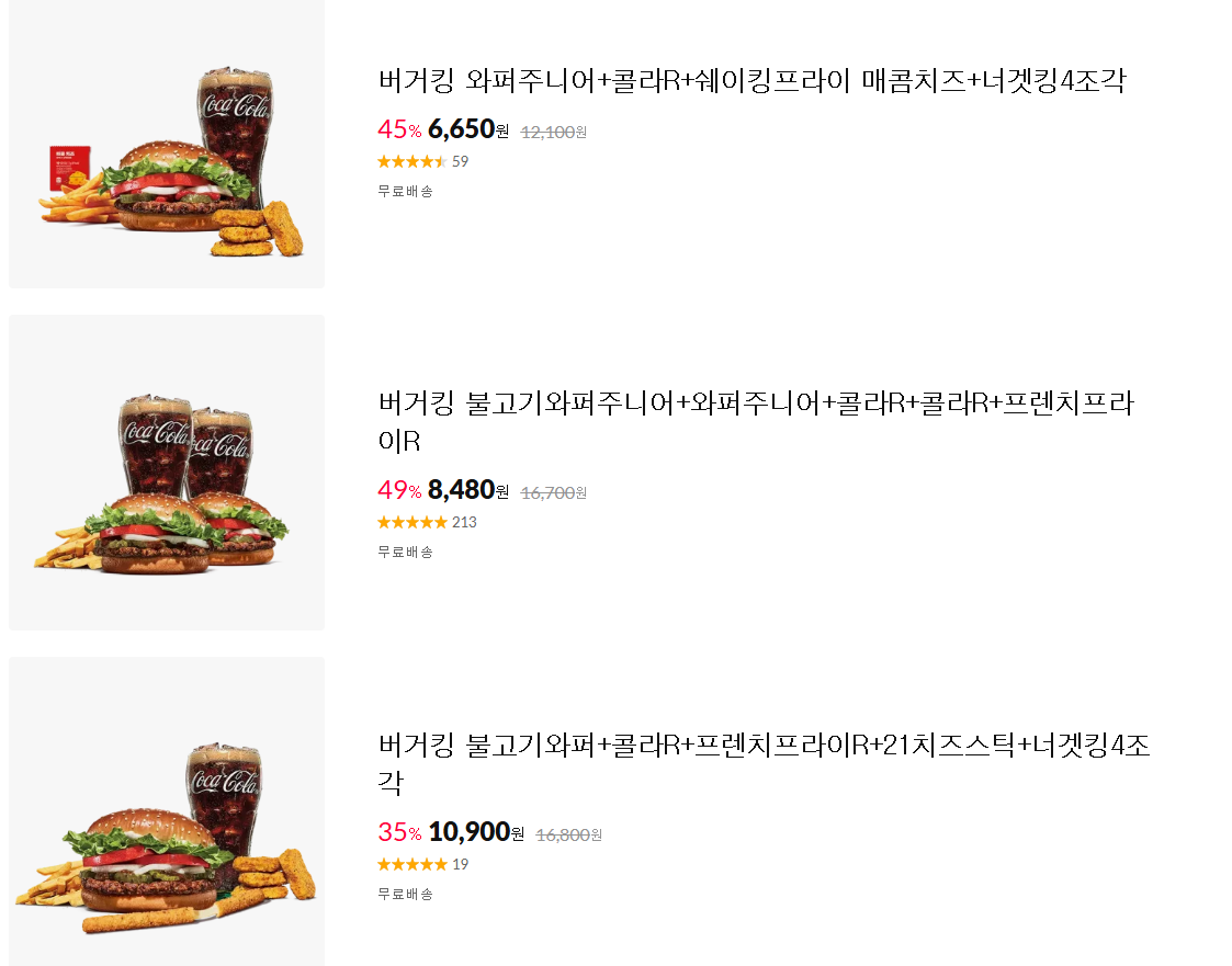 할인 브랜드 : 버거킹, 파리바게뜨 등