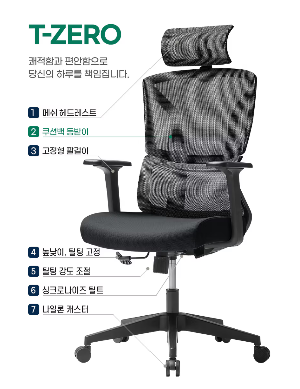 듀오백 T-ZERO 메쉬 사무용 컴퓨터 책상 의자 할인 정보 [링크]