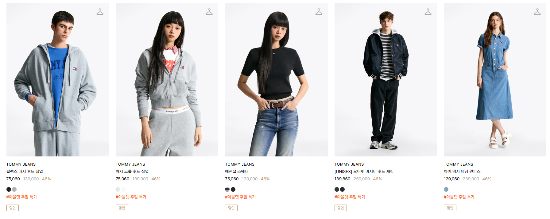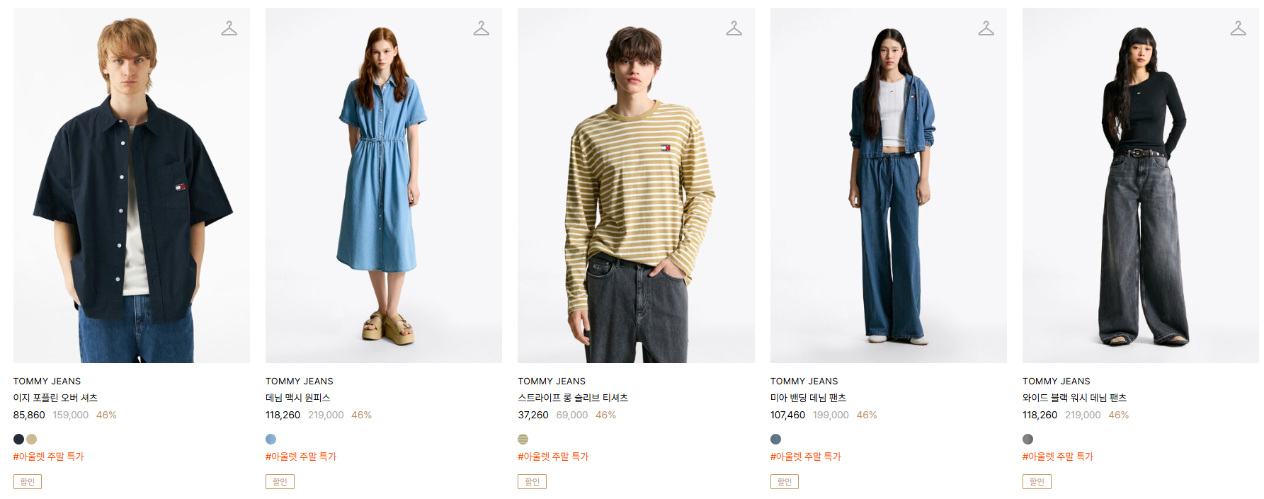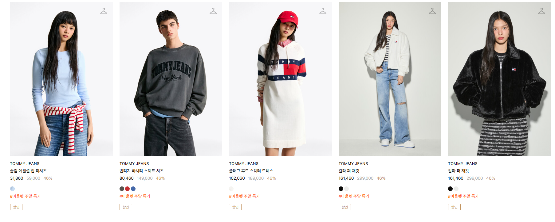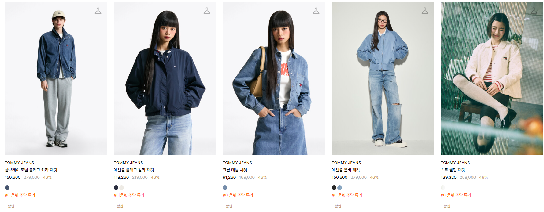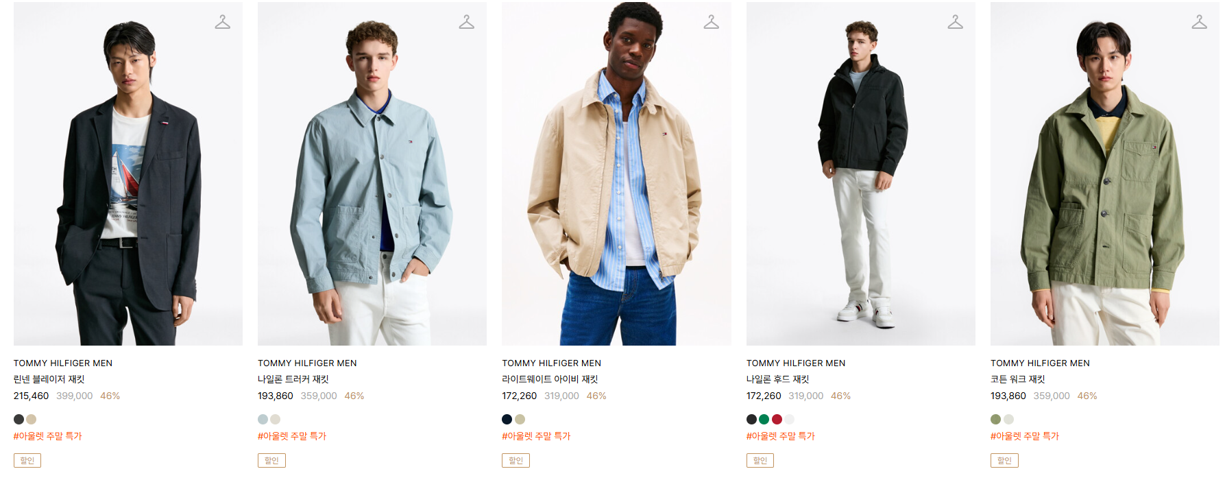 할인 품목 : 자켓, 셔츠, 티셔츠 등