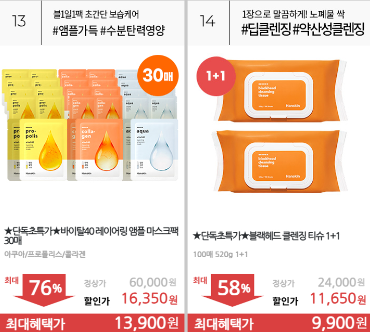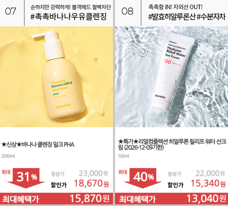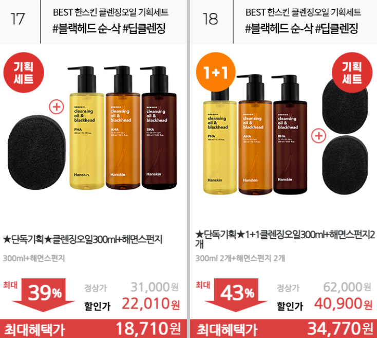 한스킨 다양한 제품을 할인 판매하네요.
