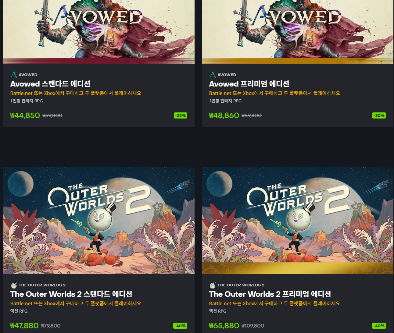 할인 게임 : 디아블로 시리즈, 스타크래프트 등