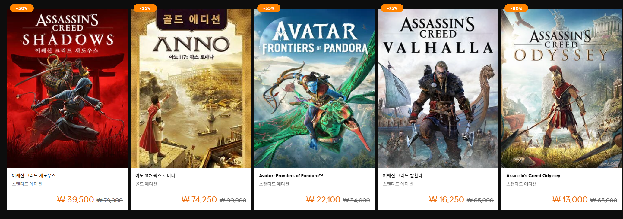 할인 게임 : 디비전2, 아바타, 어쌔신크리드 등