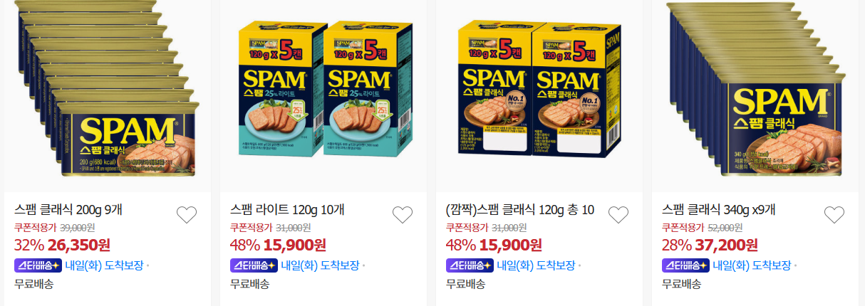 할인 품목 : 햇반, 스팸, 비비고 만두 등