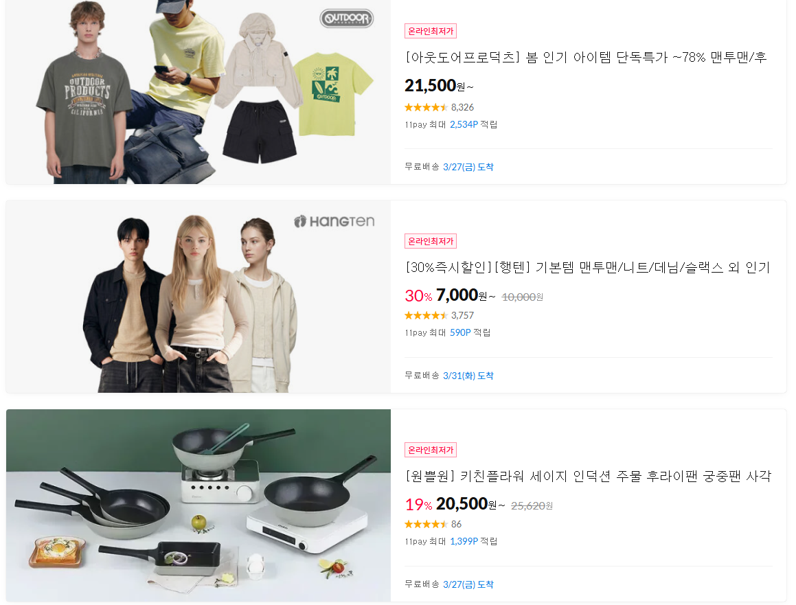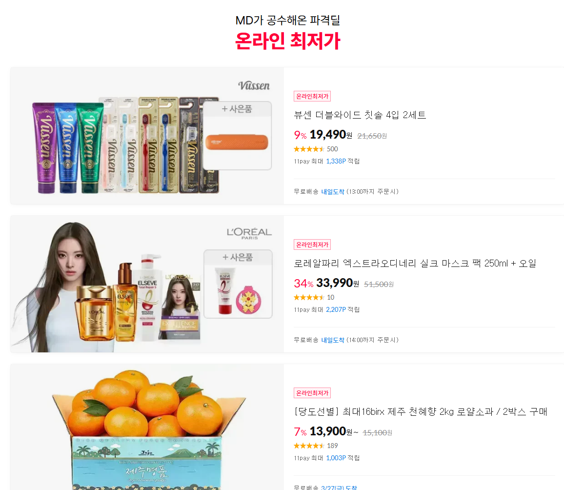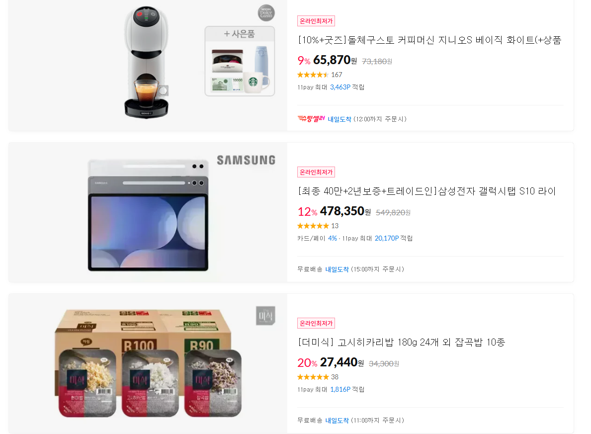 11번가 다양한 제품을 할인 판매하네요.