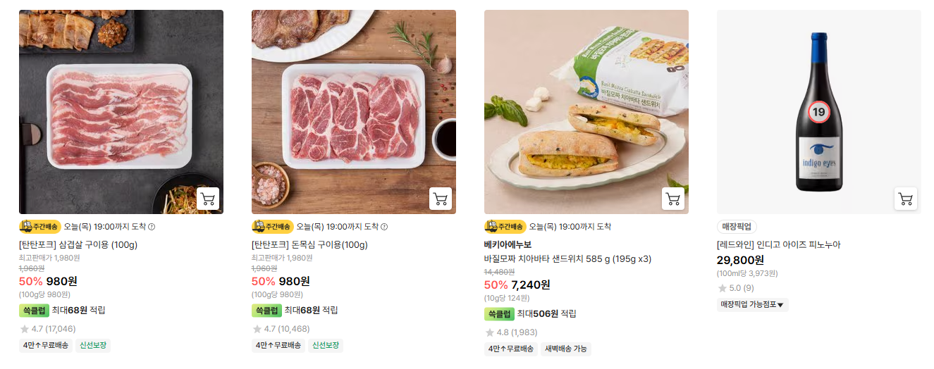 할인 품목 : 삼겹살, 가공식품 등