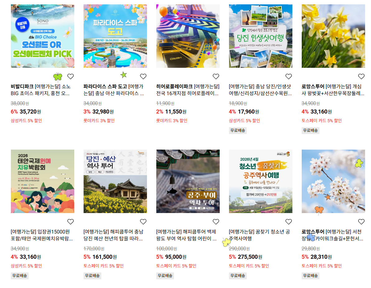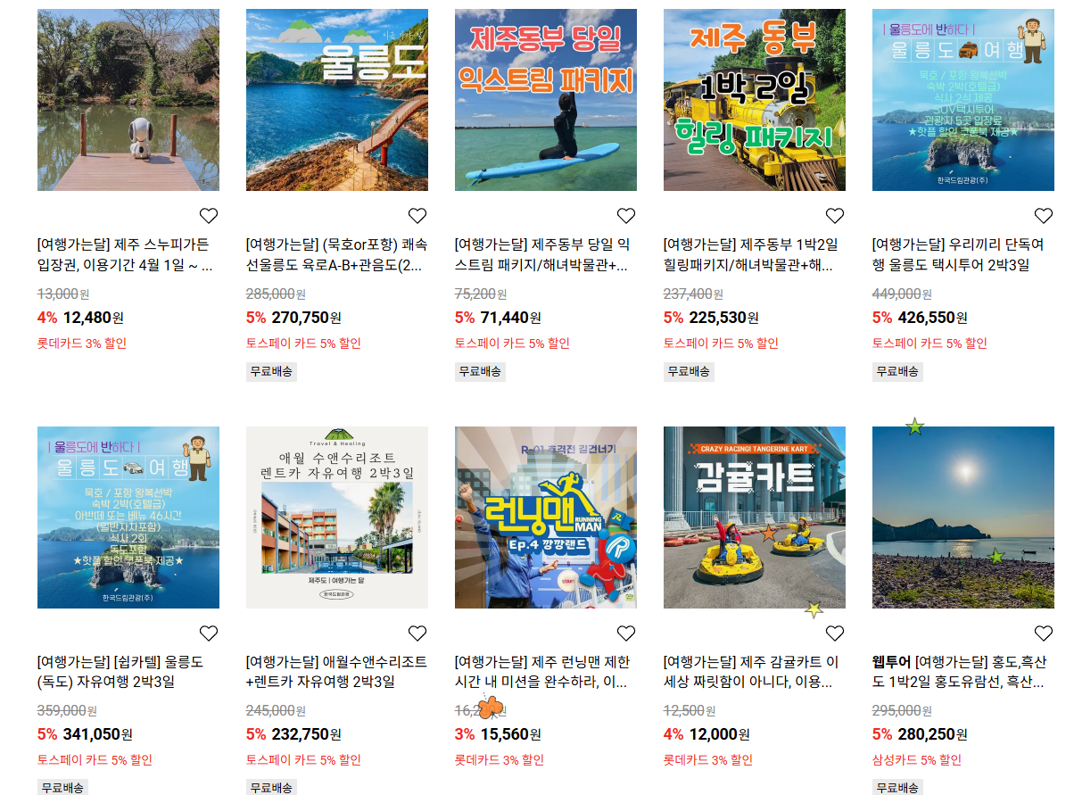 롯데온X한국관광공사 여행가는 달 할인 이벤트 진행하네요.