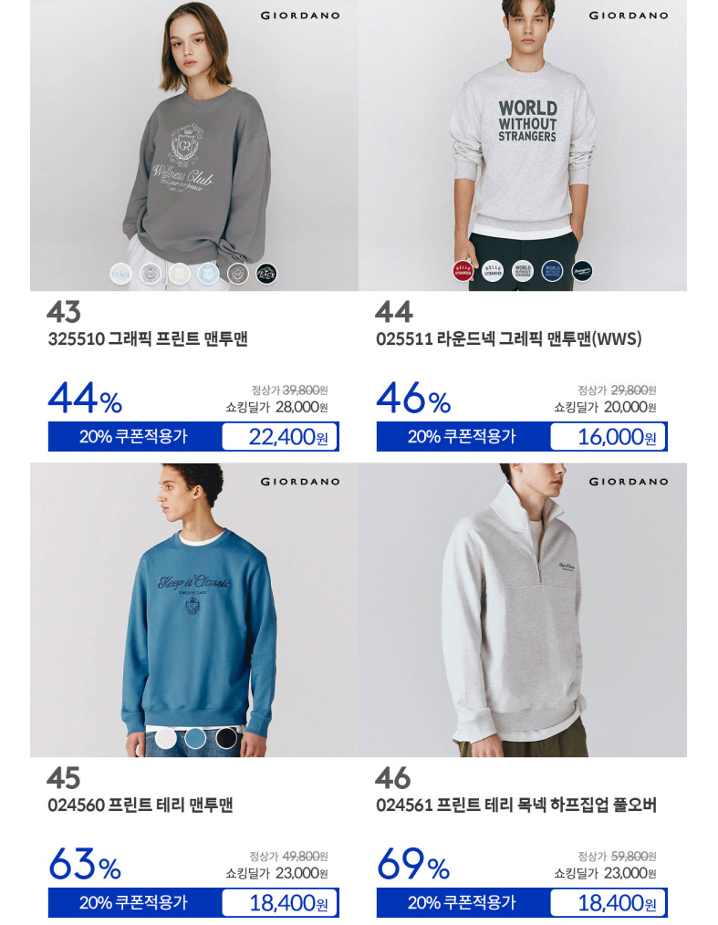 지오다노 다양한 제품을 할인 판매하네요.