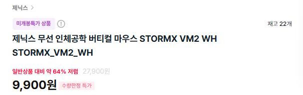 제닉스 무선 인체공학 버티컬 마우스 할인 판매하네요.