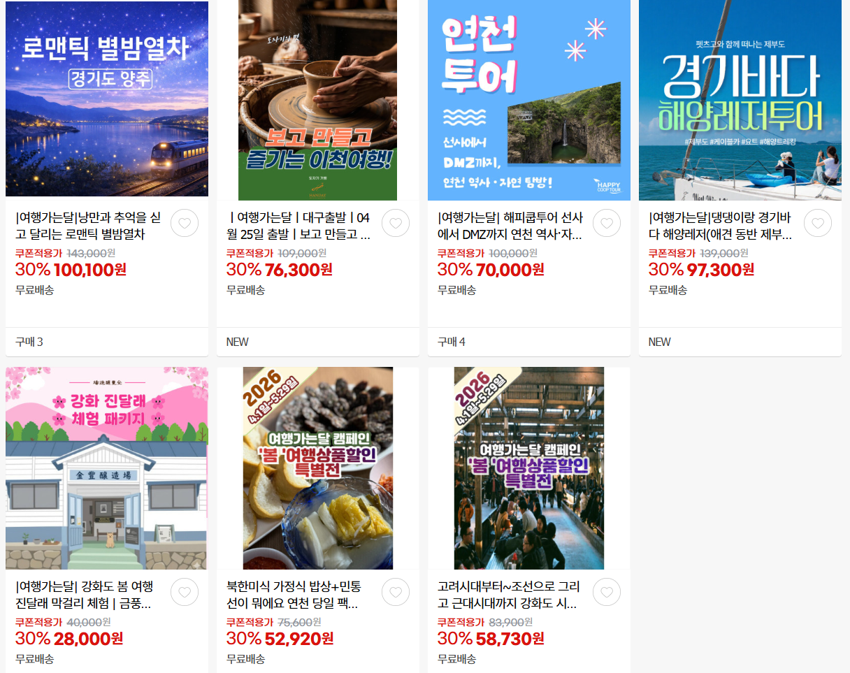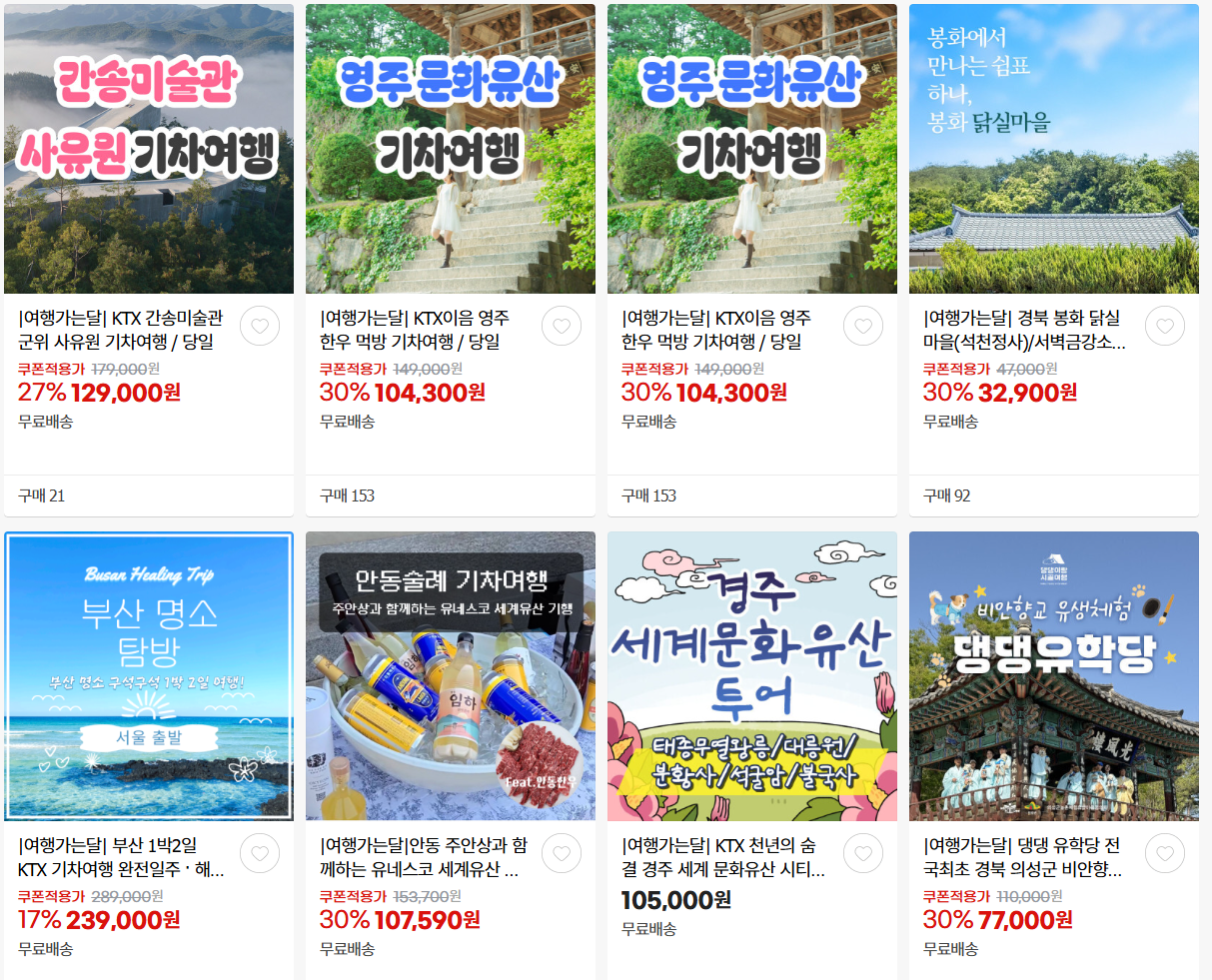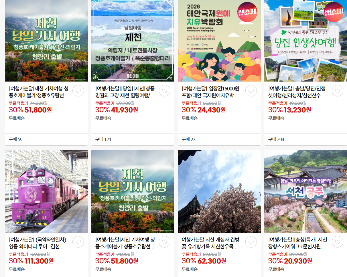 할인 품목 : 버스여행, 해양레저, 별밤열차 등