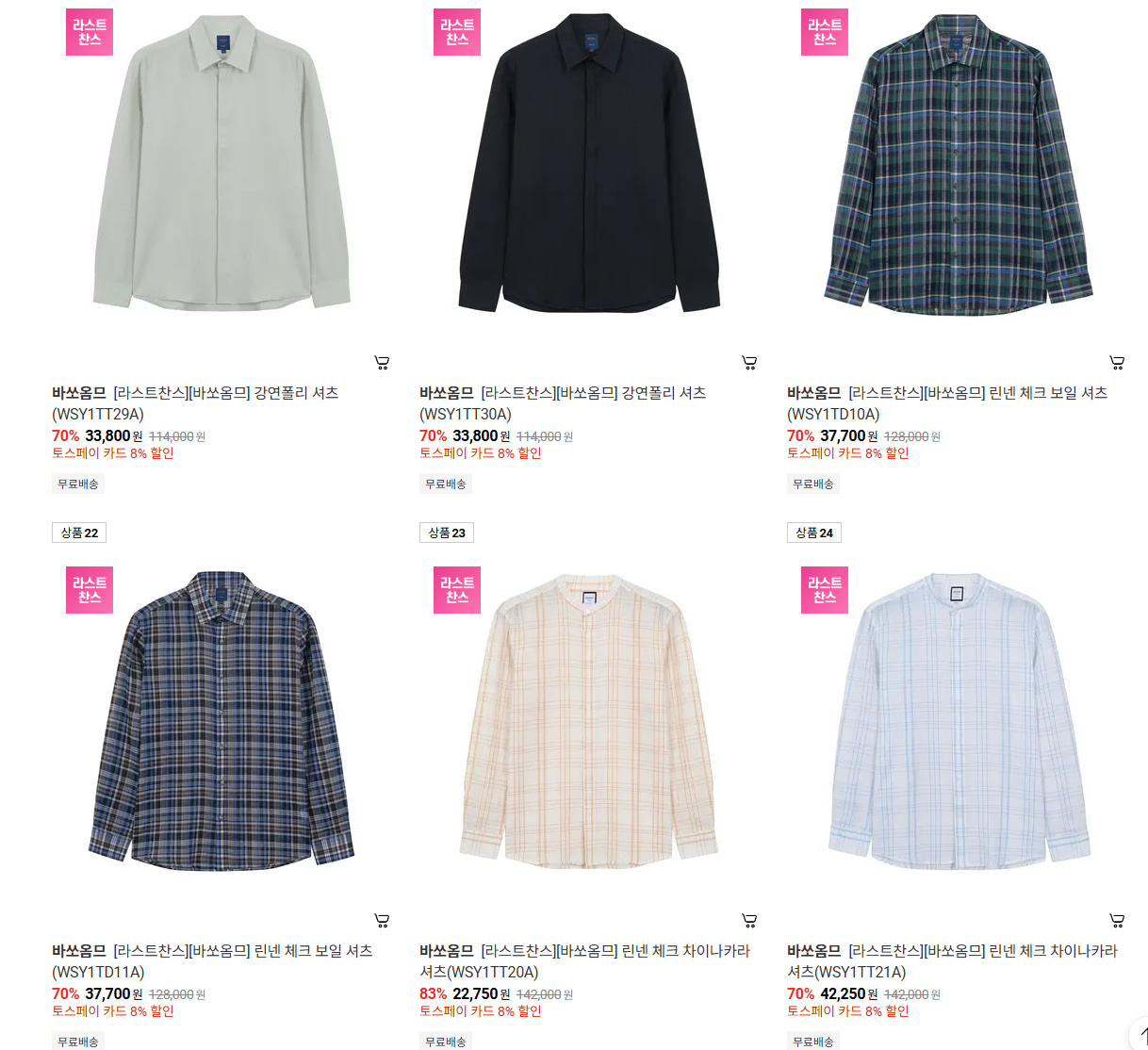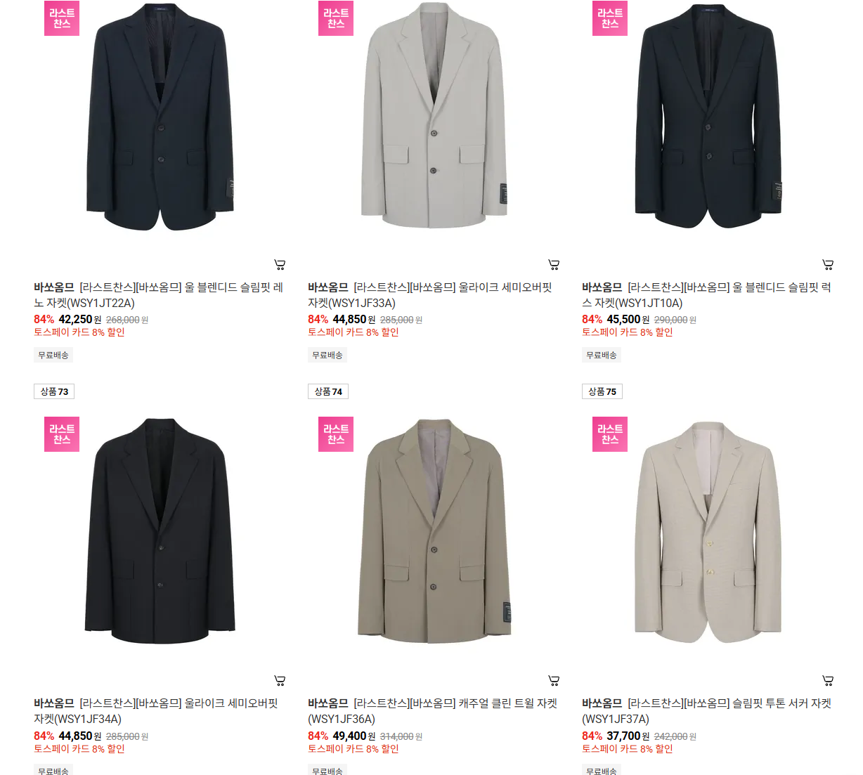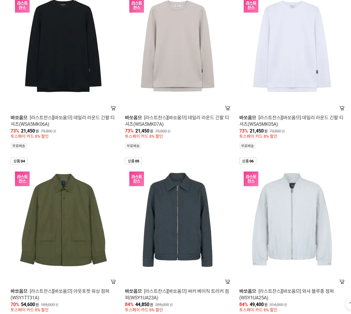 바쏘옴므 다양한 제품을 할인 판매하네요.