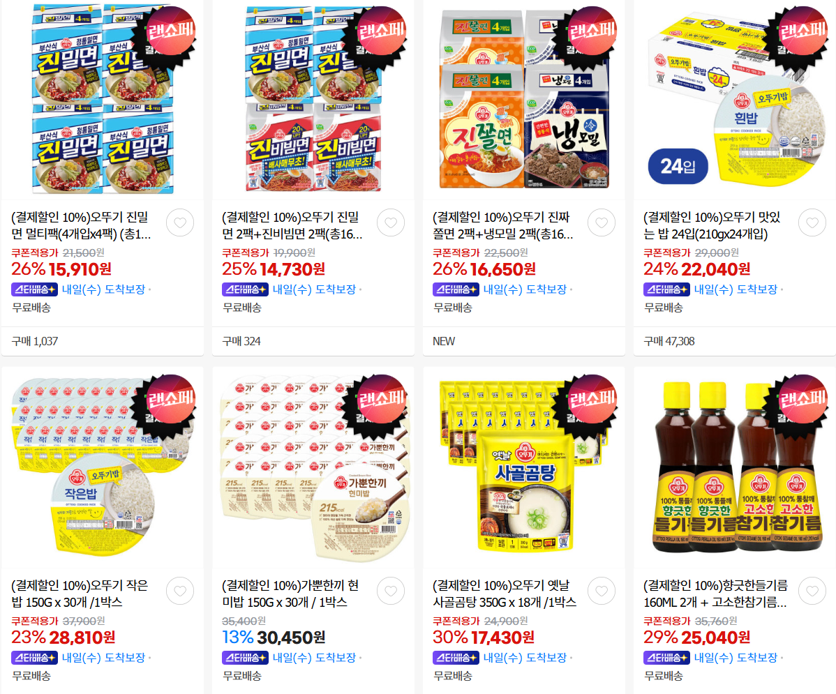 오뚜기 다양한 제품을 할인 판매하네요.