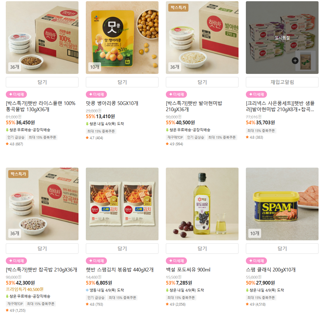 CJ더마켓 다양한 제품을 할인 판매하네요.