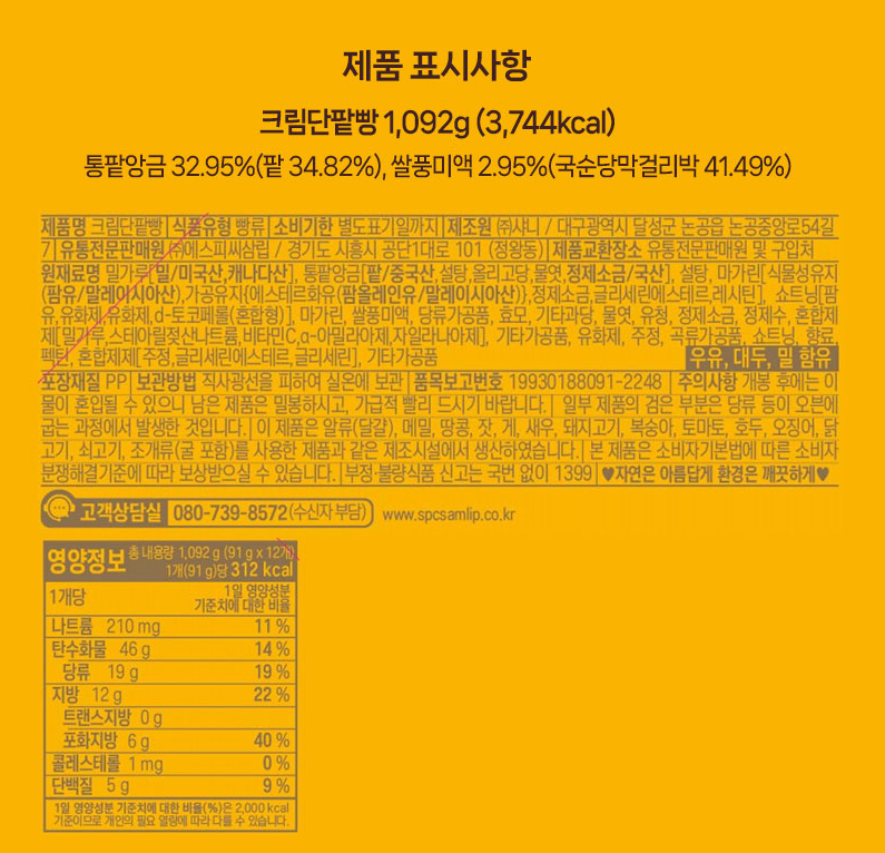 삼립 얌 크림단팥빵 12입 1박스 할인 정보 포스팅입니다.