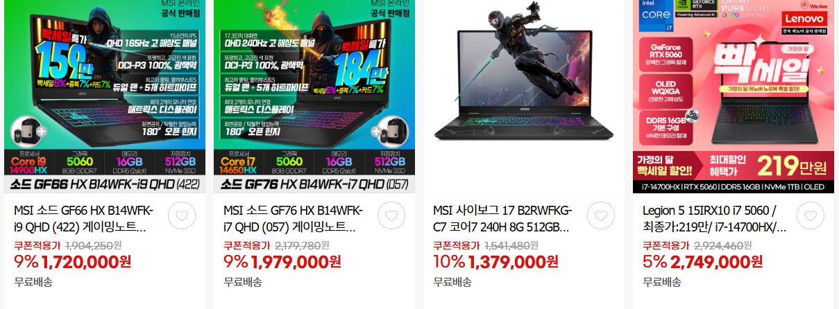 할인 품목 : 모니터, 노트북, 냉장고 등