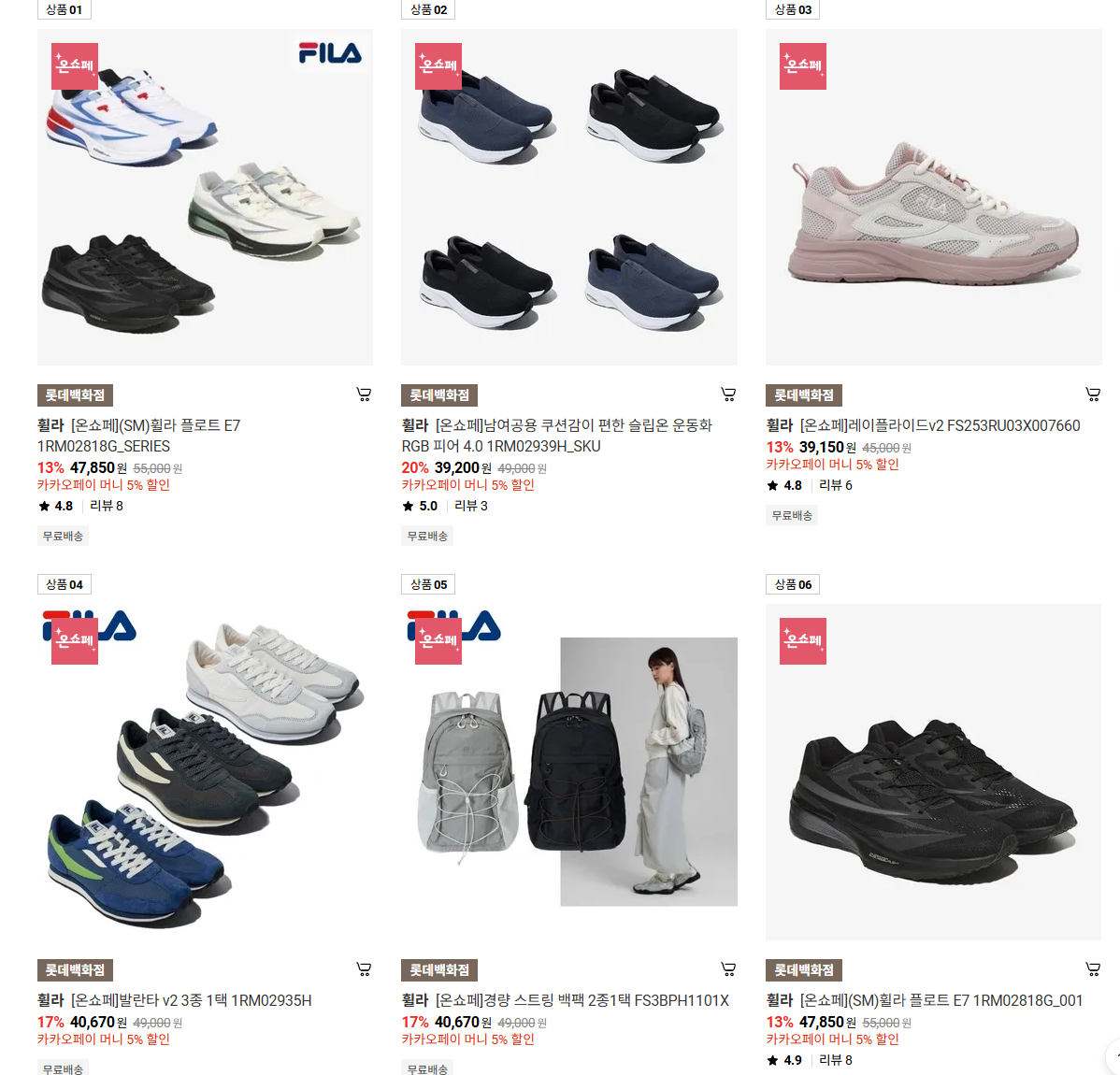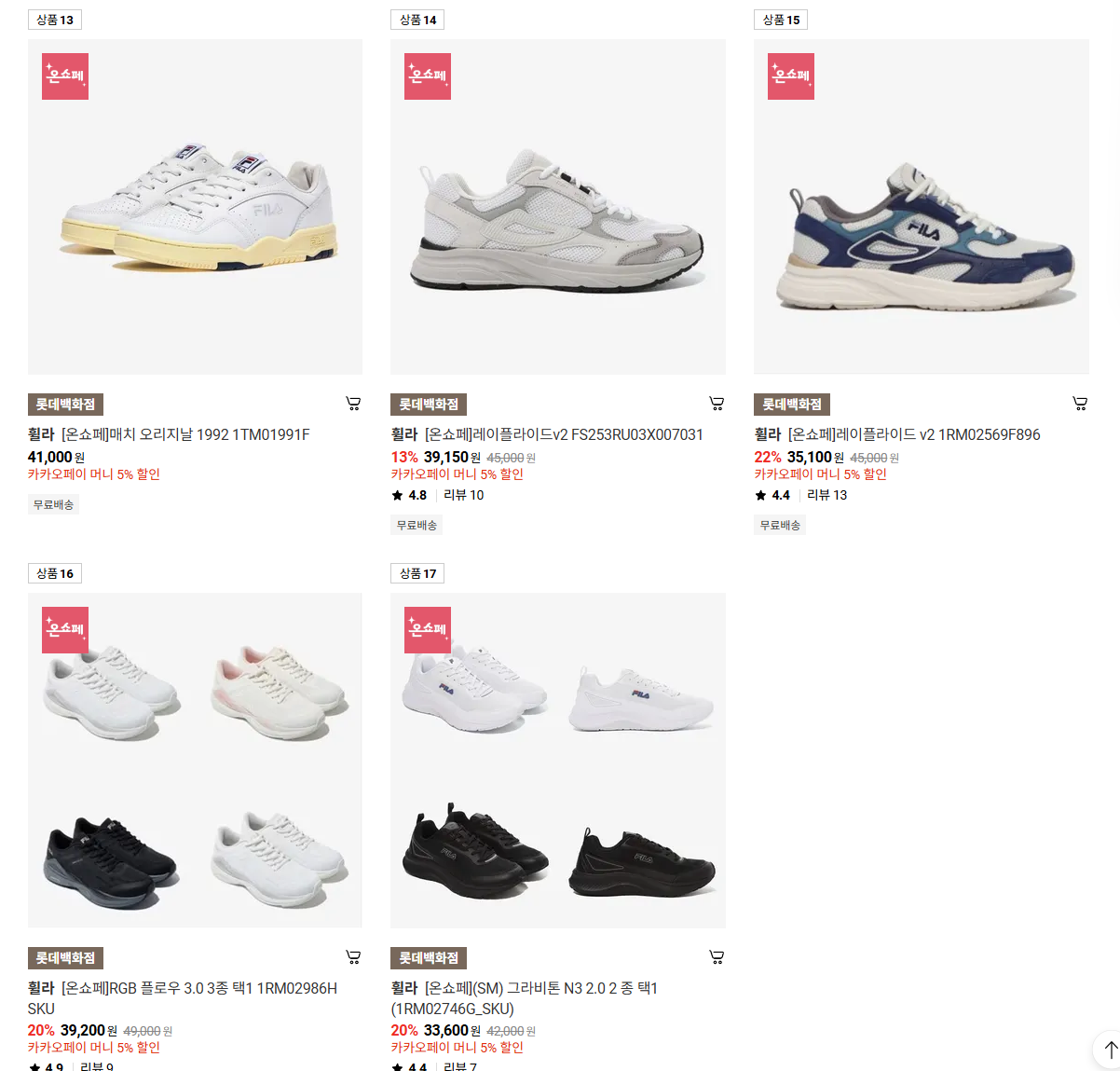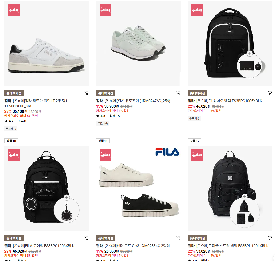 휠라 다양한 제품을 할인 판매하네요.