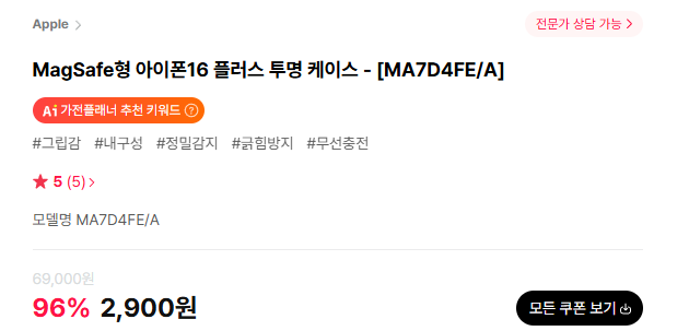 애플 MagSafe형 아이폰16 플러스 투명 케이스 할인 정보 [링크]