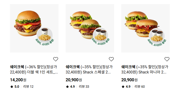 할인 품목 : 더블 쉑 1인 세트 등