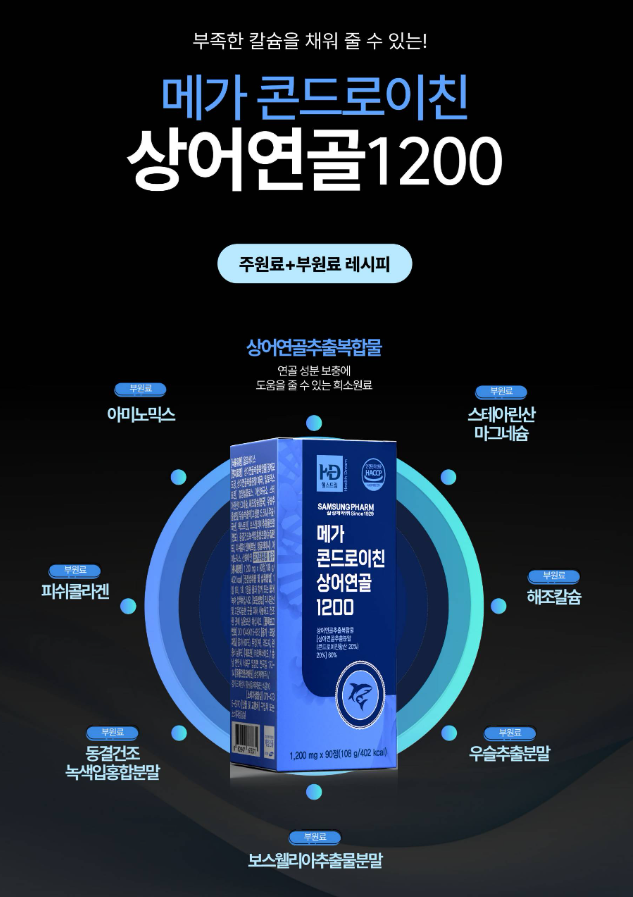 삼성제약 메가 콘드로이친 상어연골 1200 90정 할인 판매하네요.