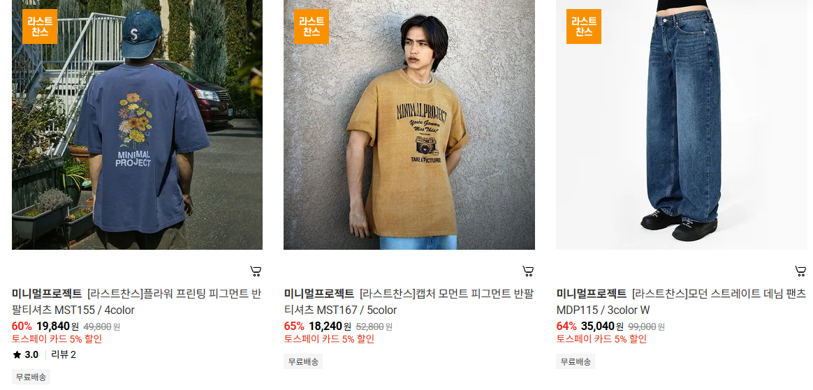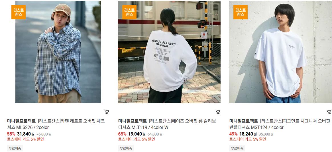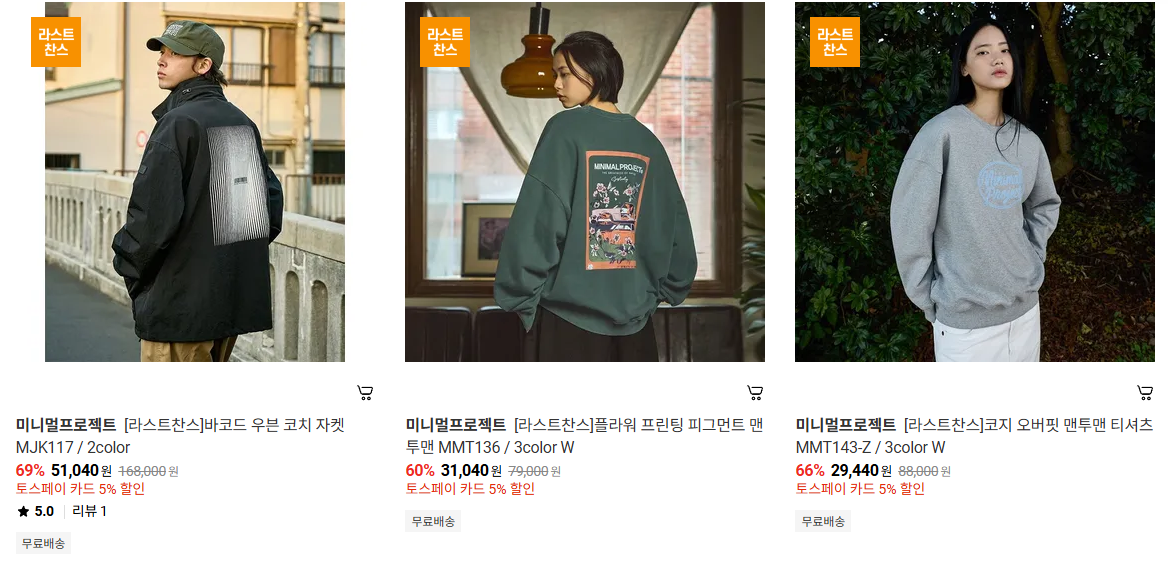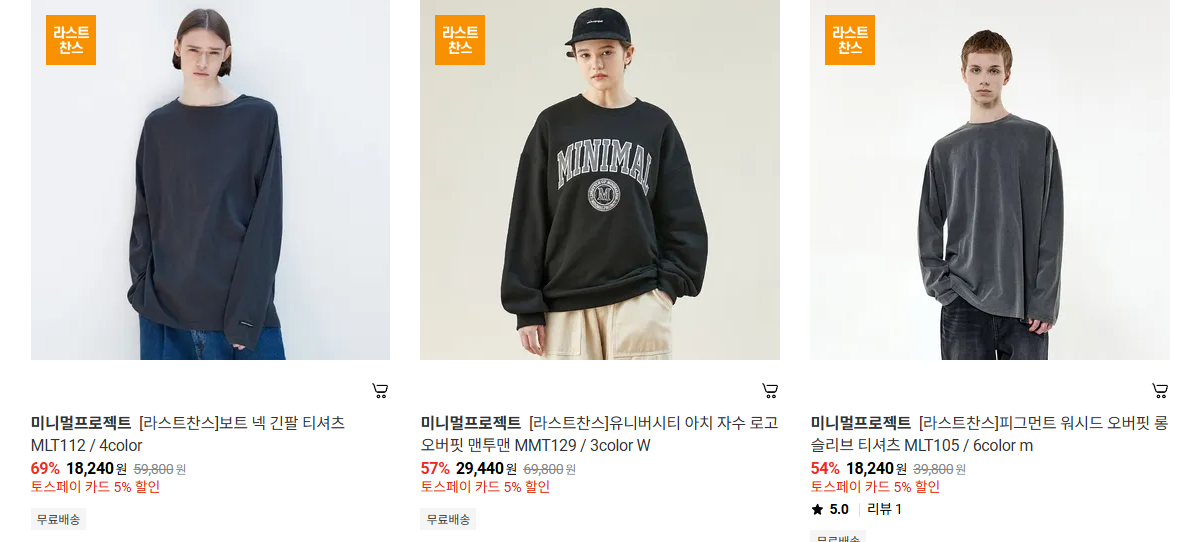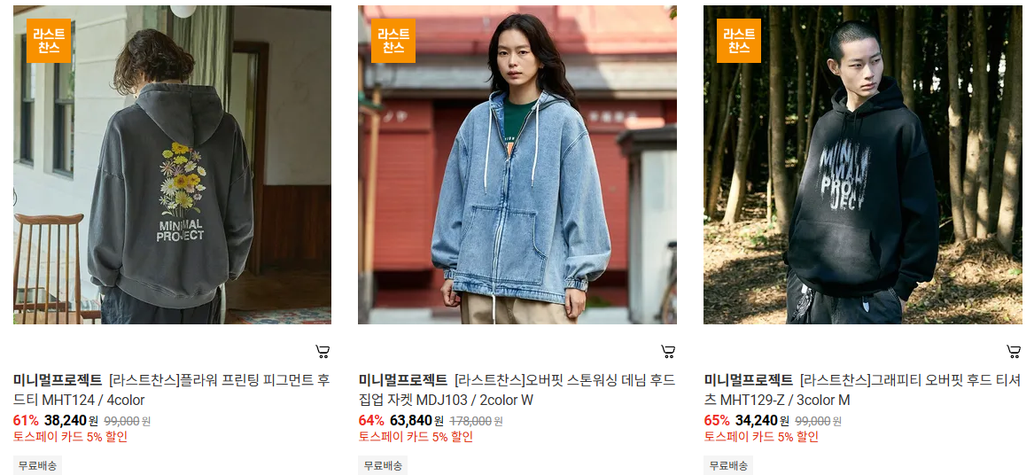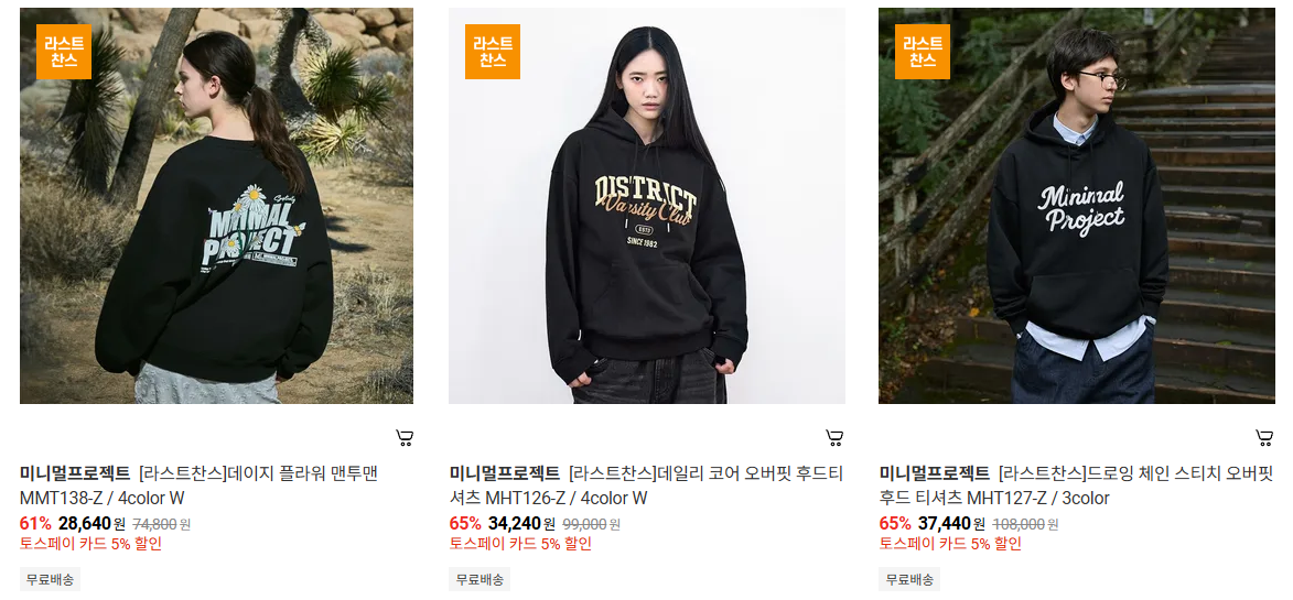 미니멀프로젝트 다양한 제품을 할인 판매하네요.