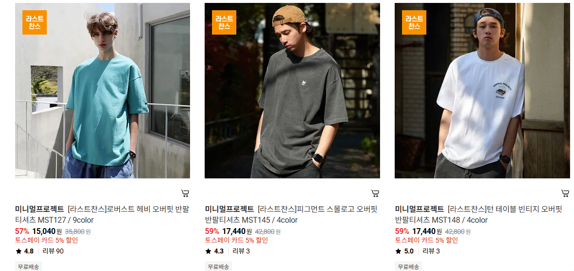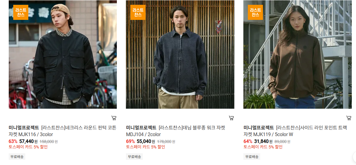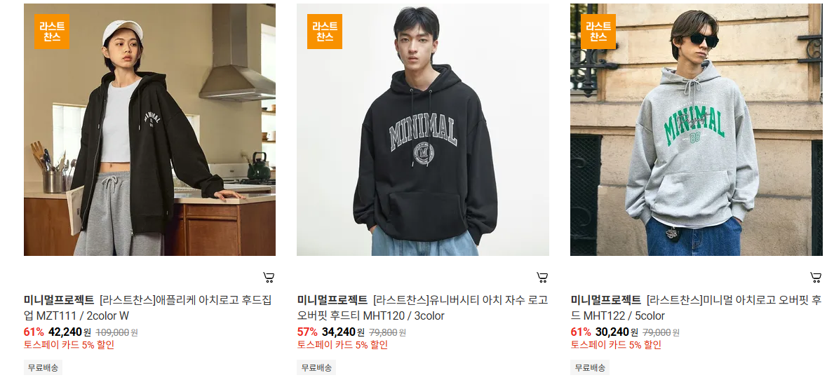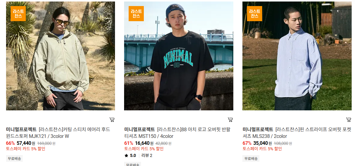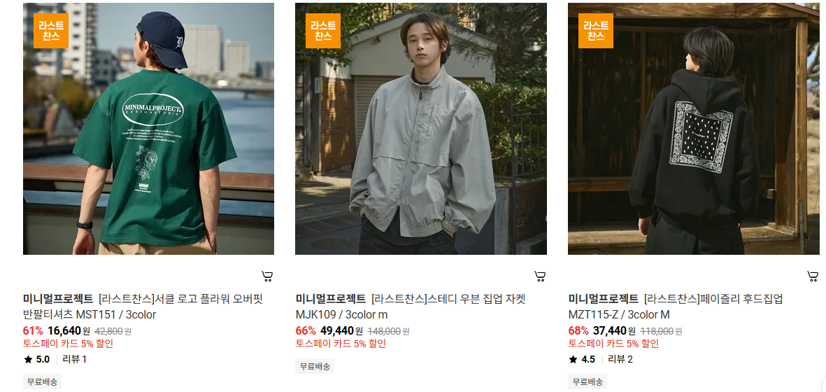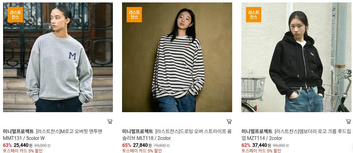 미니멀프로젝트 다양한 제품을 할인 판매하네요.