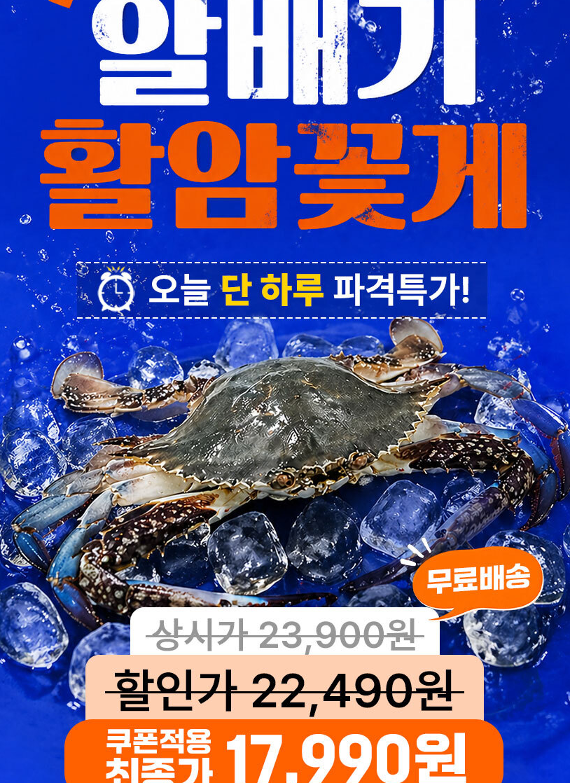 알배기 활 암꽃게 500g+500g(총 1kg) 3-5미 (중사이즈) 할인 정보 포스팅입니다.