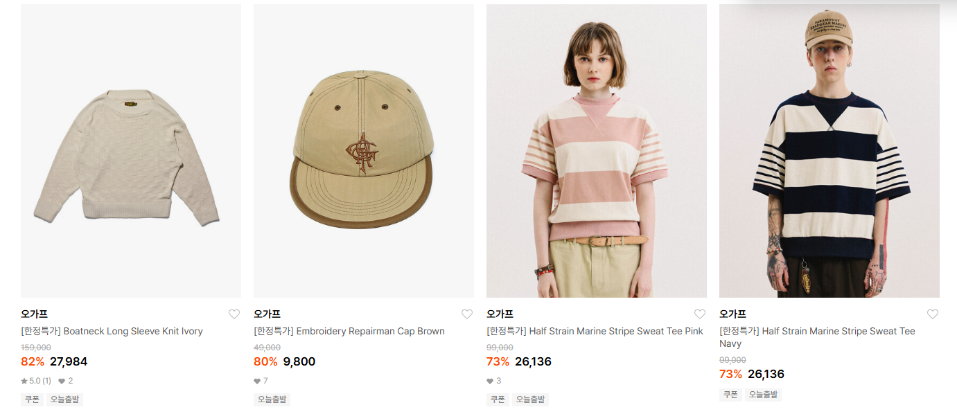 오가프 다양한 제품을 할인 판매하네요.