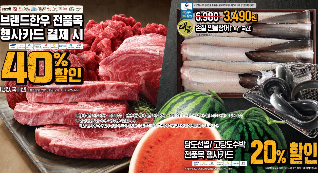 이마트 가정의 달 행사 이벤트 이마트 가정의 달 행사 이벤트 정보 포스팅입니다. 이마트 사이트에서 할인 이벤트를 진행하네요. 할인 품목 : 육류, 과일, 냉동식품, 레고 등 이마트 가정의 달 행사 이벤트 정보 [링크] 핫딜/식품&생활 2021.04.29