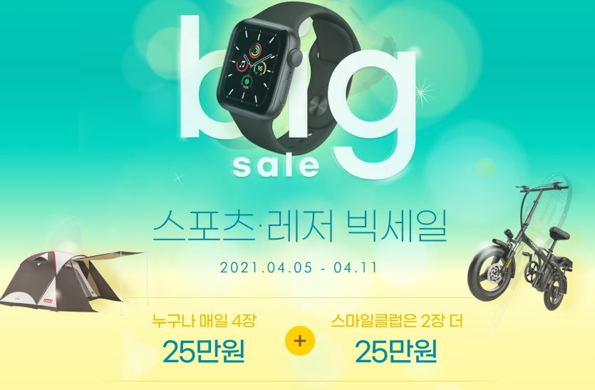 옥션/G마켓 스포츠 레저 빅세일 옥션/G마켓 스포츠 레저 빅세일 정보 포스팅입니다. 옥션, G마켓 사이트에서 할인 이벤트를 진행하네요. 할인 품목 : 의류, 스마트워치 등 이벤트 기간 : 2021년 4월 5일 ~ 4월 11일 옥션 [링크] G마켓 [링크] 핫딜/패션&스포츠 2021.04.05