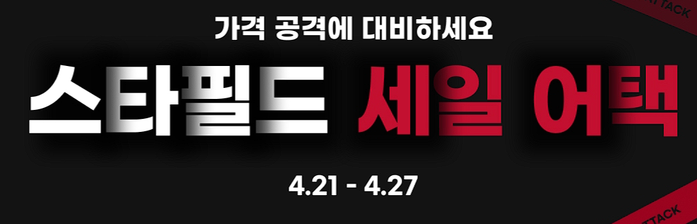 스타필드 세일 어택 이벤트 스타필드 세일 어택 이벤트 정보 포스팅입니다. 다양한 제품을 할인 판매하네요. 할인 품목 : 의류, 신발, 화장품 등 이벤트 기간 : 2025년 4월 27일까지 스타필드 세일 어택 이벤트 정보 [링크] 핫딜/패션&스포츠 2025.04.22