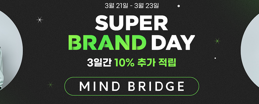 마인드브릿지 슈퍼 브랜드 데이 이벤트 마인드브릿지 슈퍼 브랜드 데이 이벤트 정보 포스팅입니다. 마인드브릿지 다양한 제품을 할인 판매하네요. 할인 품목 : 자켓, 니트, 팬츠 등 이벤트 기간 : 2025년 3월 21일 ~ 2025년 3월 23일 마인드브릿지 슈퍼 브랜드 데이 이벤트 정보 [링크] 핫딜/패션&스포츠 2025.03.21