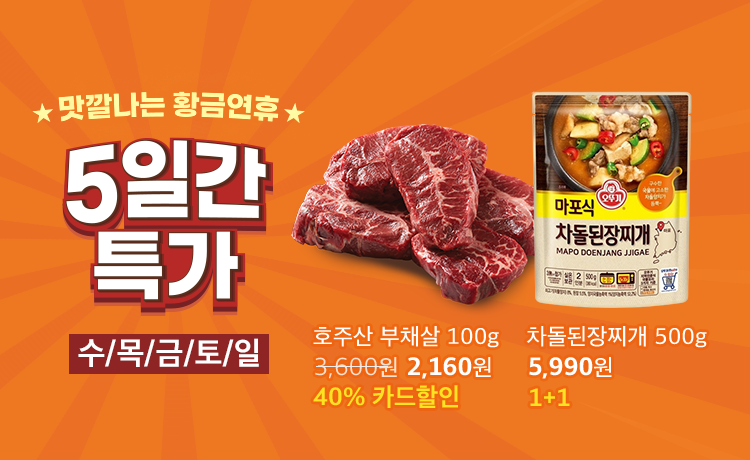 청정원&종가집 브랜드 판타지 청정원&종가집 브랜드 판타지 정보 포스팅입니다. 청정원&종가집 다양한 제품을 할인 판매하네요. 할인 품목 : 스파게티 소스, 피자, 김치 등 10시 14시 18시 선착순 100명 체험팩 판매 이벤트 기간 : 2024년 10월 10일 청정원&종가집 브랜드 판타지 정보 [링크] 핫딜/식품&생활 2024.10.10