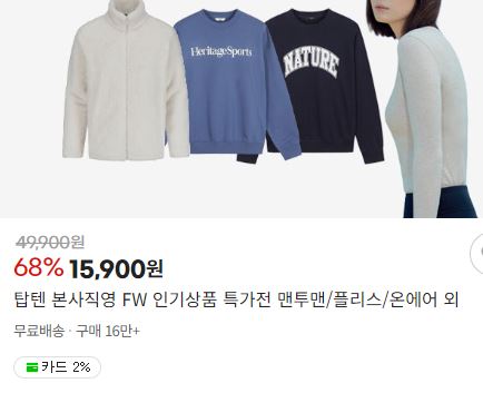 탑텐 최대 80% 세일 탑텐 최대 80% 세일 정보 포스팅입니다. 탑텐 다양한 제품을 할인 판매하네요. 할인 품목 : 티셔츠, 가디건, 점퍼 등 무료배송 탑텐 최대 80% 세일 정보 [링크] 핫딜/패션&스포츠 2024.10.07