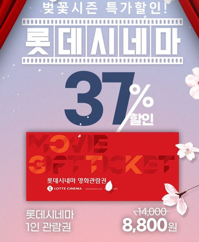 롯데시네마 영화관람권 37% 할인 롯데시네마 영화관람권 37% 할인 정보 포스팅입니다. 롯데시네마 영화관람권을 할인 판매하네요. 할인가 8800원 롯데시네마 영화관람권 37% 할인 정보 [링크] 핫딜/식품&생활 2024.04.09
