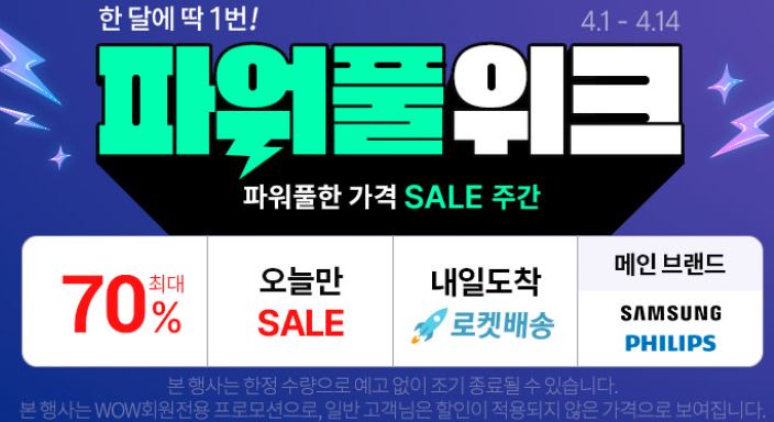쿠팡 파워풀 위크 이벤트 쿠팡 파워풀 위크 이벤트 정보 포스팅입니다. 쿠팡 다양한 제품을 할인 판매하네요. 할인 품목 : 면도기, 모니터, 키보드 등 이벤트 기간 : 2024년 4월 14일까지 쿠팡 파워풀 위크 이벤트 정보 [링크] "이 포스팅은 쿠팡 파트너스 활동의 일환으로 이에 따른 일정액의 수수료를 제공 받습니다" 핫딜/PC&가전 2024.04.02