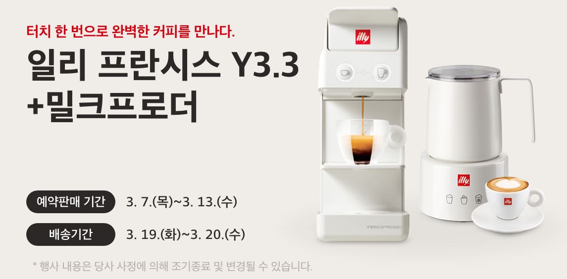 일리 프란시스 Y3.3 + 밀크프로더 할인 일리 프란시스 Y3.3 + 밀크프로더 할인 정보 포스팅입니다. 일리 프란시스 Y3.3 + 밀크프로더 함께 구매 시 할인 이벤트를 진행하네요. 할인가 167000원 예약판매 기간 : 2024년 3월 13일까지 배송기간 : 2024년 3월 19일 ~ 2024년 3월 20일 일리 프란시스 Y3.3 + 밀크프로더 할인 정보 [링크] 핫딜/PC&가전 2024.03.10