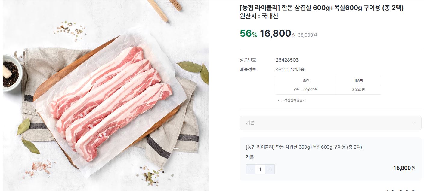 농협몰 신규가입 한돈 삼겹살 600g+목살600g 할인 농협몰 신규가입 한돈 삼겹살 600g+목살600g 할인 정보 포스팅입니다. 농협몰 한돈 삼겹살 600g+목살600g 할인 이벤트를 진행하네요. 신규 가입시 최대 할인가 10120원 농협몰 신규가입 한돈 삼겹살 600g+목살600g 할인 정보 [링크] 핫딜/식품&생활 2024.02.27