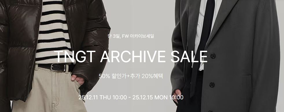 TNGT 최대 58% 세일 TNGT 최대 58% 세일 정보 포스팅입니다. TNGT 다양한 제품을 할인 판매하네요. 할인 품목 : 점퍼, 자켓, 니트 등 이벤트 기간 : 2025년 12월 15일 오전 10시까지 TNGT 최대 58% 세일 정보 [링크] 핫딜/패션&스포츠 2025.12.12