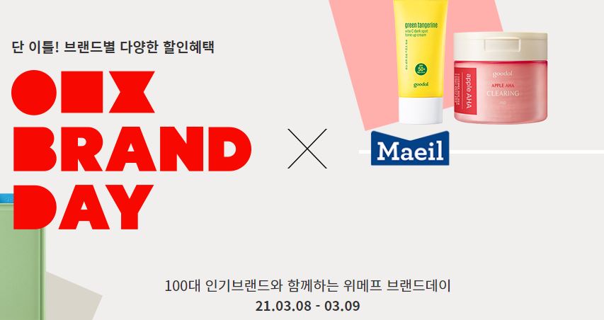 위메프 브랜드데이 이벤트 위메프 브랜드데이 이벤트 정보 포스팅입니다. 위메프 사이트에서 할인 이벤트를 진행하네요. 할인 품목 : 화장품, 의류, 식품 등 이벤트 기간 : 2021년 3월 8일 ~ 3월 9일 위메프 브랜드데이 이벤트 정보 [링크] 핫딜/패션&스포츠 2021.03.08