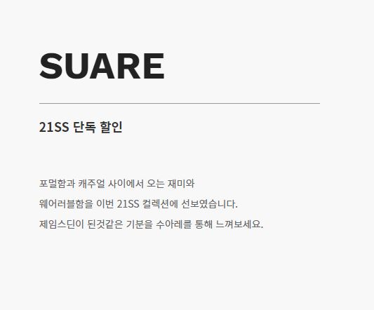 SUARE 할인 이벤트 SUARE 할인 이벤트 정보 포스팅입니다. SUARE 다양한 제품을 할인 판매하네요. 할인 품목 : 니트, 티셔츠, 팬츠 등 SUARE 할인 이벤트 정보 [링크] 핫딜/패션&스포츠 2021.03.17
