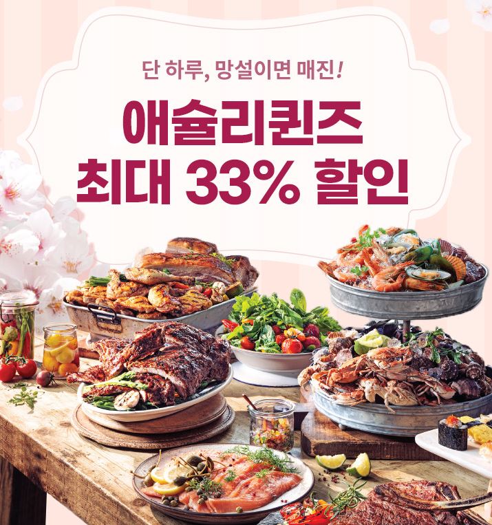 애슐리퀸즈 최대 33% 할인 애슐리퀸즈 최대 33% 할인 정보 포스팅입니다. 애슐리퀸즈 다양한 제품을 할인 판매하네요. 할인 품목 : 2인/3인 스테이크세트 애슐리퀸즈 최대 33% 할인 정보 [링크] 핫딜/식품&생활 2021.03.26