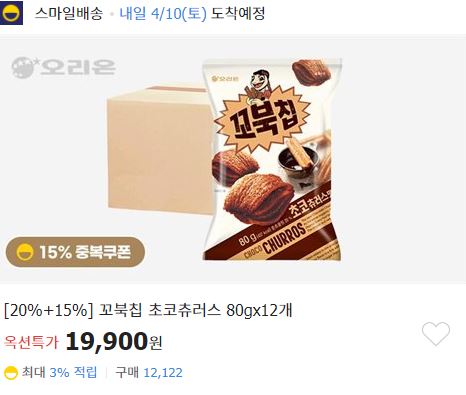 오리온 꼬북칩 초코츄러스 80g 12개 할인 이벤트 오리온 꼬북칩 초코츄러스 80g 12개 할인 이벤트 정보 포스팅입니다. 오리온 꼬북칩 초코츄러스 80g 12개를 할인 판매하네요. 정가 19900원 / 최대 할인가 12930원 오리온 꼬북칩 초코츄러스 80g 12개 할인 이벤트 정보 [링크] 핫딜/식품&생활 2021.04.09