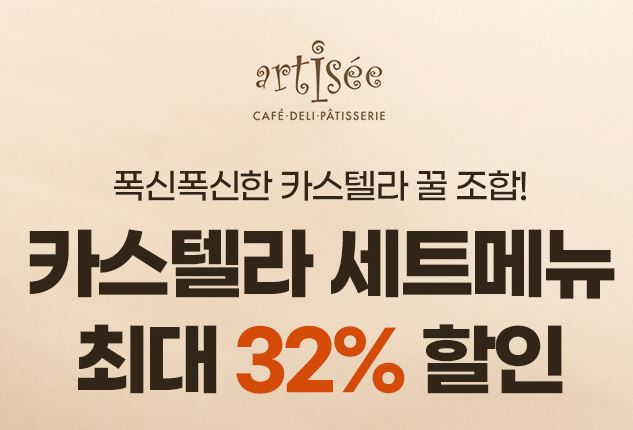 아티제 최대 32% 할인 아티제 최대 32% 할인 정보 포스팅입니다. 아티제 다양한 메뉴를 할인 판매하네요. 할인 메뉴 : 카스텔라 세트메뉴 아티제 최대 32% 할인 정보 [링크] 핫딜/식품&생활 2021.04.27