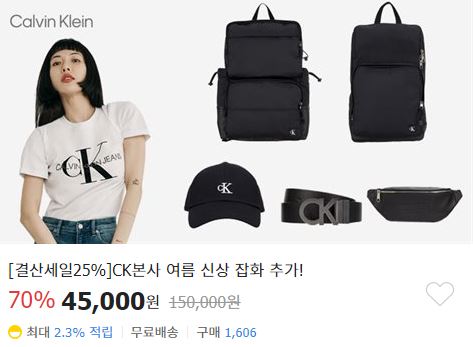 CK 최대 70% 세일 CK 최대 70% 세일 정보 포스팅입니다. CK 다양한 제품을 할인 판매하네요. 할인 품목 : 백팩, 모자, 벨트 등 무료배송 CK 최대 70% 세일 정보 [링크] 핫딜/패션&스포츠 2021.05.31