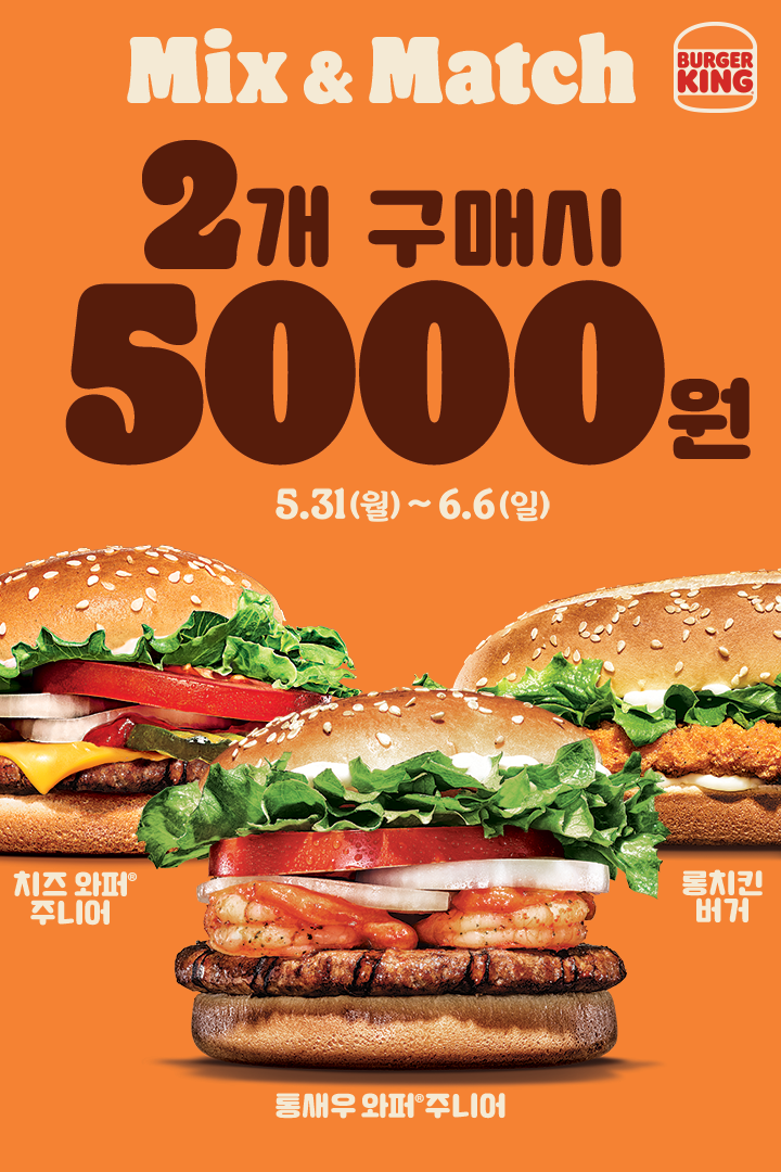 버거킹 할인 이벤트 버거킹 할인 이벤트 정보 포스팅입니다. 버거킹 다양한 메뉴를 할인 판매하네요. 이벤트 메뉴 : 치즈와퍼주니어, 롱치킨버거, 롱새우와퍼주니어 2개 구입 시 5000원 이벤트 기간 : 2021년 5월 31일 ~ 6월 6일 핫딜/식품&생활 2021.05.31