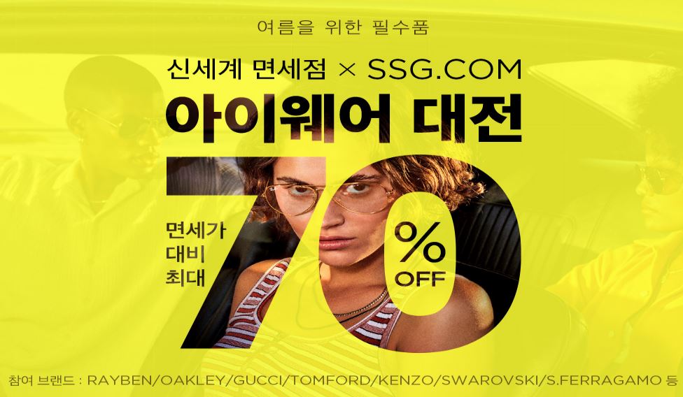 SSG 아이웨어 최대 70% 세일 SSG 아이웨어 최대 70% 세일 정보 포스팅입니다. SSG 사이트에서 할인 이벤트를 진행하네요. 할인 품목 : 선글라스 SSG 아이웨어 최대 70% 세일 정보 [링크] 핫딜/패션&스포츠 2021.05.19