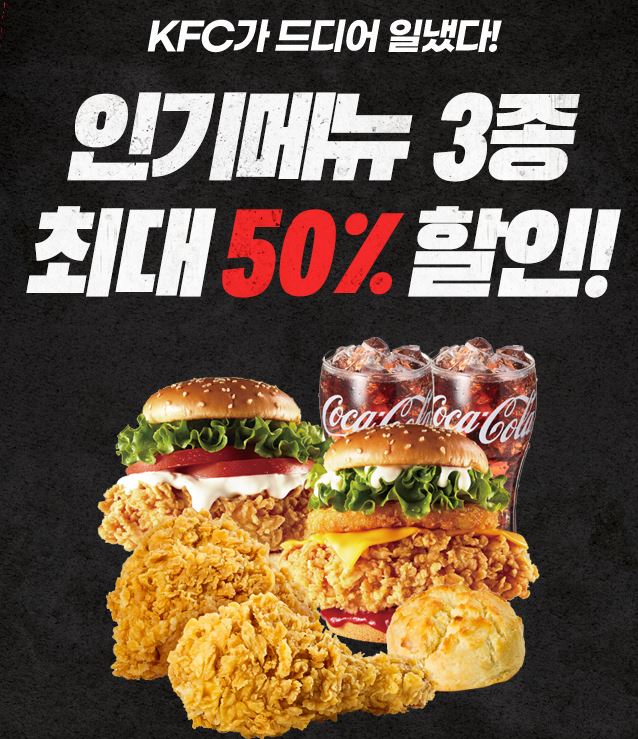 KFC 인기메뉴 3종 최대 50% 할인 KFC 인기메뉴 3종 최대 50% 할인 정보 포스팅입니다. KFC 다양한 메뉴를 할인 판매하네요. 할인 품목 : 징거타워팩, 1인치킨반반세트 등 KFC 인기메뉴 3종 최대 50% 할인 정보 [링크] 핫딜/식품&생활 2021.05.21