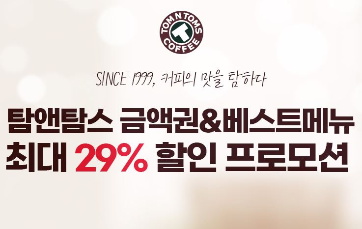 탐앤탐스 최대 29% 할인 탐앤탐스 최대 29% 할인 정보 포스팅입니다. 탐앤탐스 다양한 메뉴를 할인 판매하네요. 할인 메뉴 : 아메리카노, 스무디 등 탐앤탐스 최대 29% 할인 정보 [링크] 핫딜/식품&생활 2021.05.21